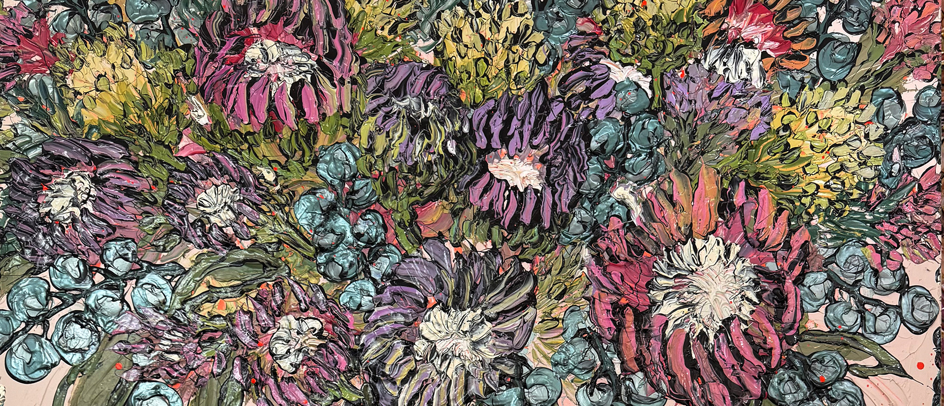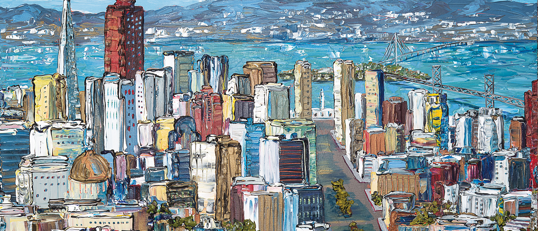 Sue’s physical studio is located inside Gallery Sausalito, offering a creative experience to everyone who visits. “Sharing my creative process helps people connect with my work.”