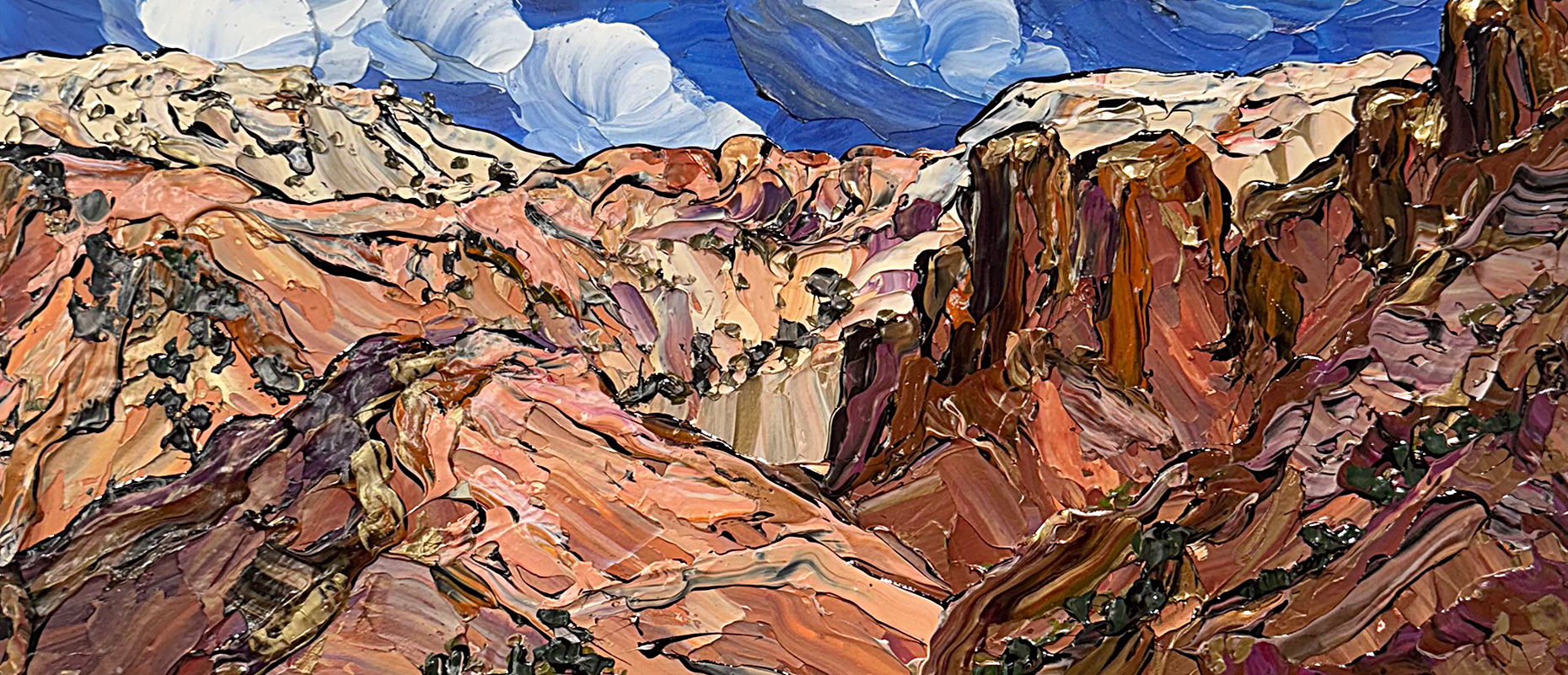 Here you’ll find over 600 paintings that date back to 1999. This is a sampling of Sue’s body of work, illustrating the creative journey she has taken with her paintings.
